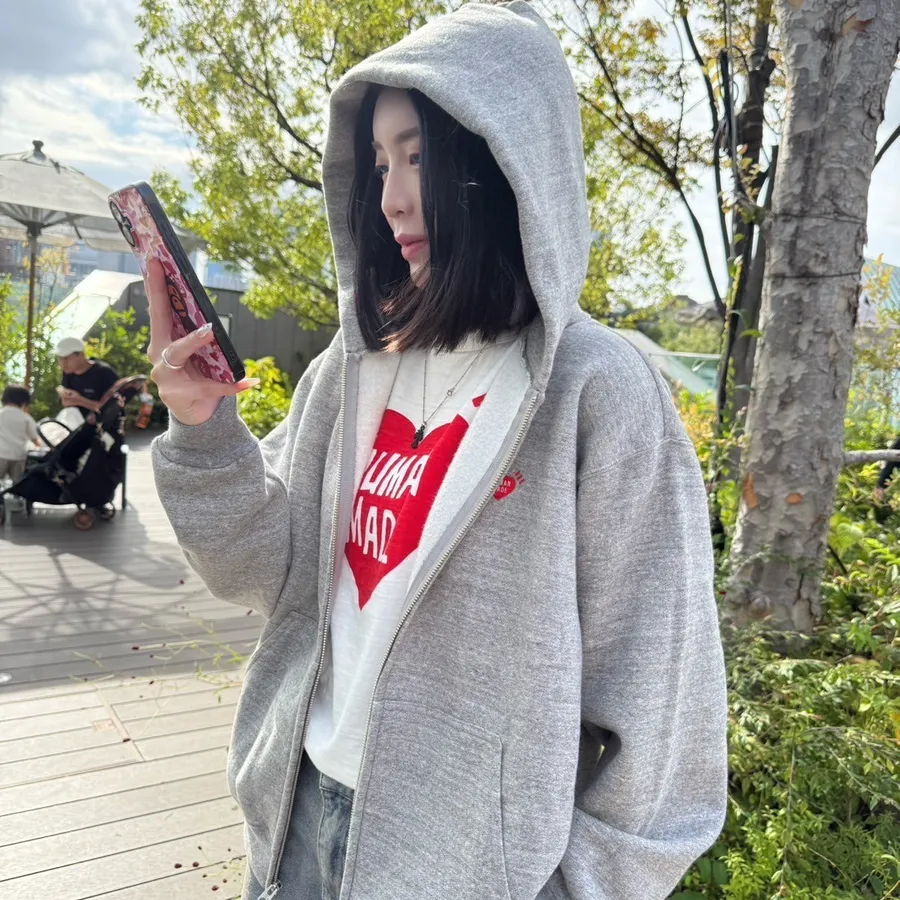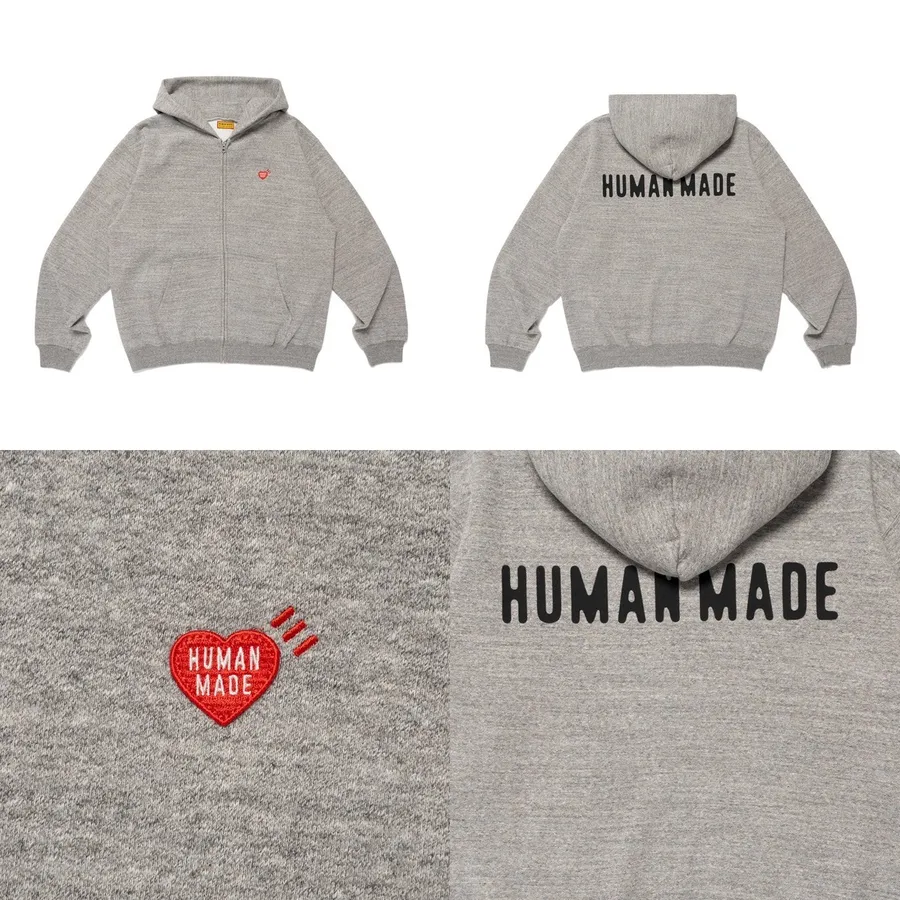 𝐌𝐫.𝐏𝐚𝐧𝐠𝐤𝐚©現貨🖤HUMAN MADE ZIP-UP HOODIE 愛心刺繡 背後字體 拉鍊 連帽 外套