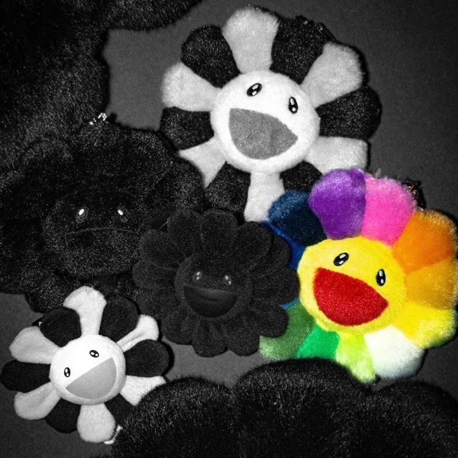 𝐌𝐫.𝐏𝐚𝐧𝐠𝐤𝐚©現貨🖤🩶🤍村上隆 新款 雙面小花大吊飾 毛絨吊飾 太陽花 全黑 黑灰 灰白 包包吊飾 雙面表情