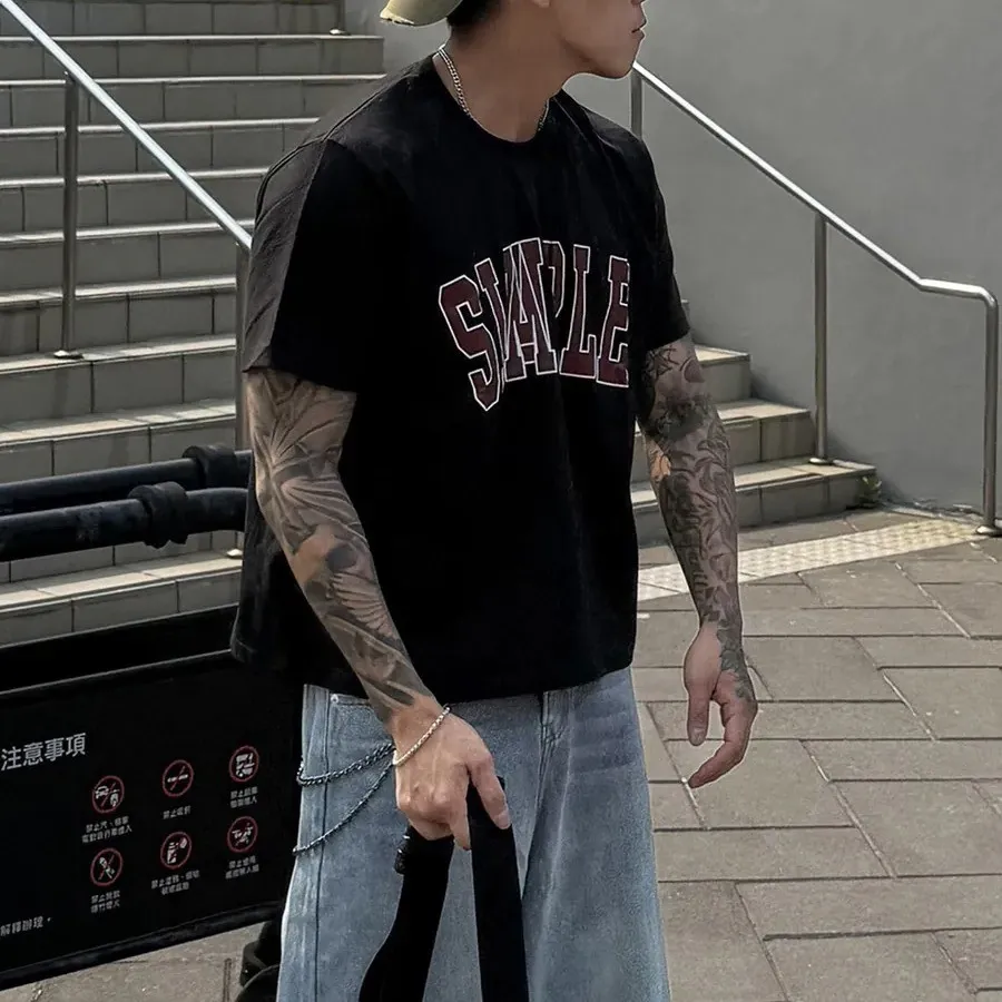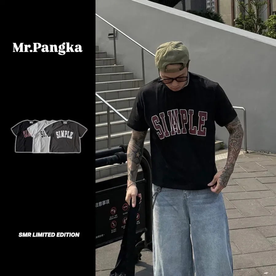𝐌𝐫.𝐏𝐚𝐧𝐠𝐤𝐚©韓國🇰🇷美式SIMPLE英文短寬短TEE 短袖 美式 潮流 寬鬆 男女裝 上衣
